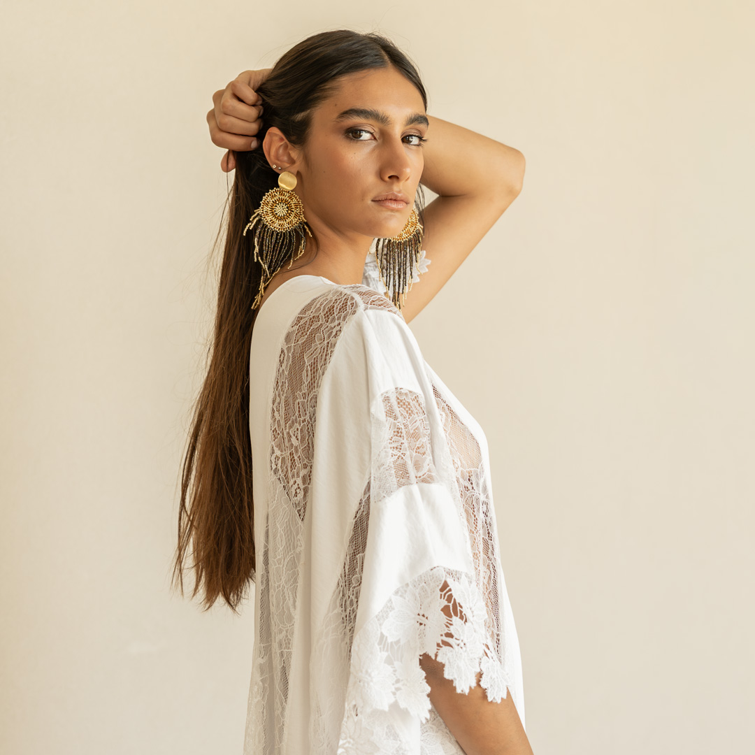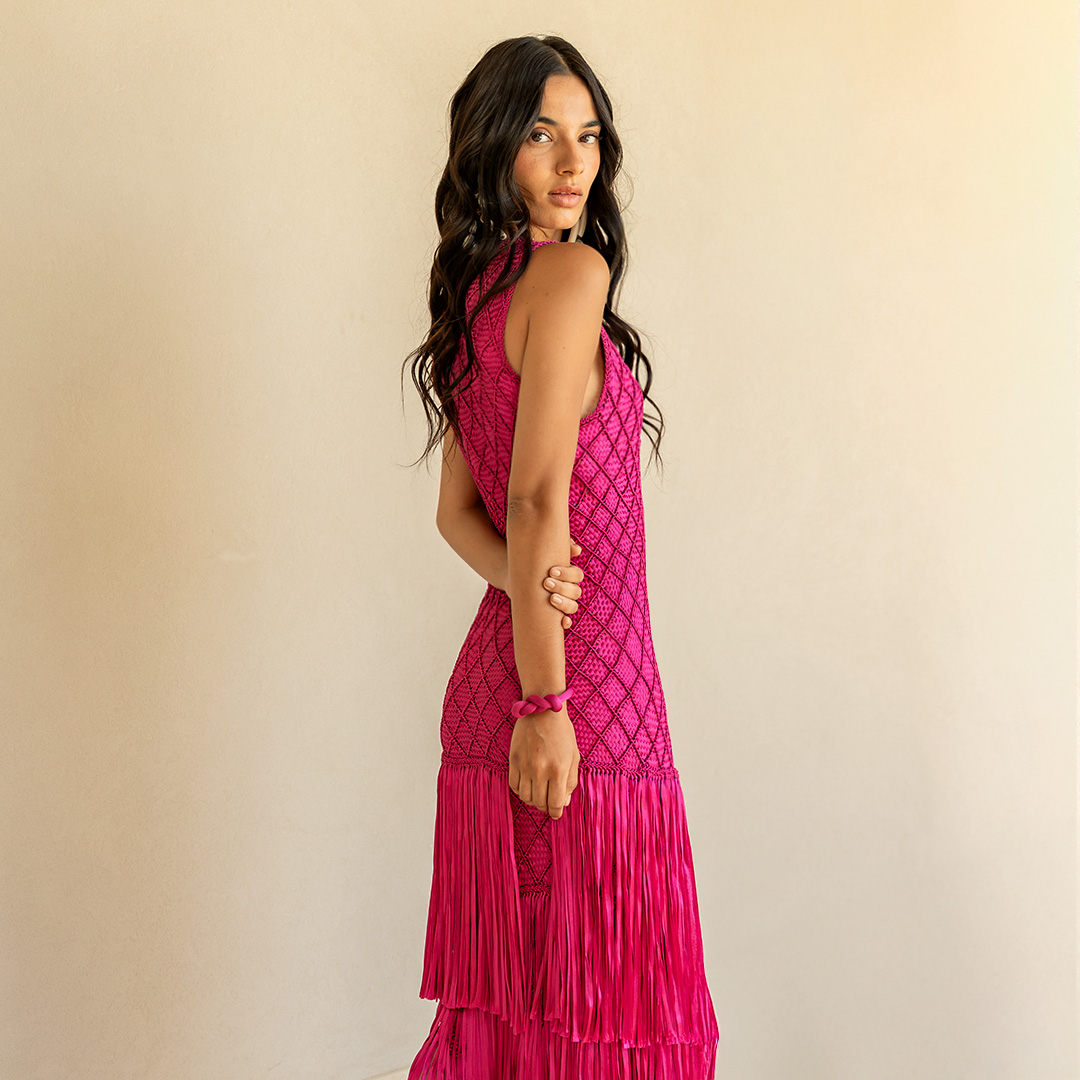 El macramé surge del silencio y de la paciencia de las manos del artesano. Cada pieza nace del diálogo entre manos y viento. Los hilos se mueven, se abren, respiran. Revelan un legado que no se detiene, que fue heredado para seguir latiendo sobre el cuerpo.