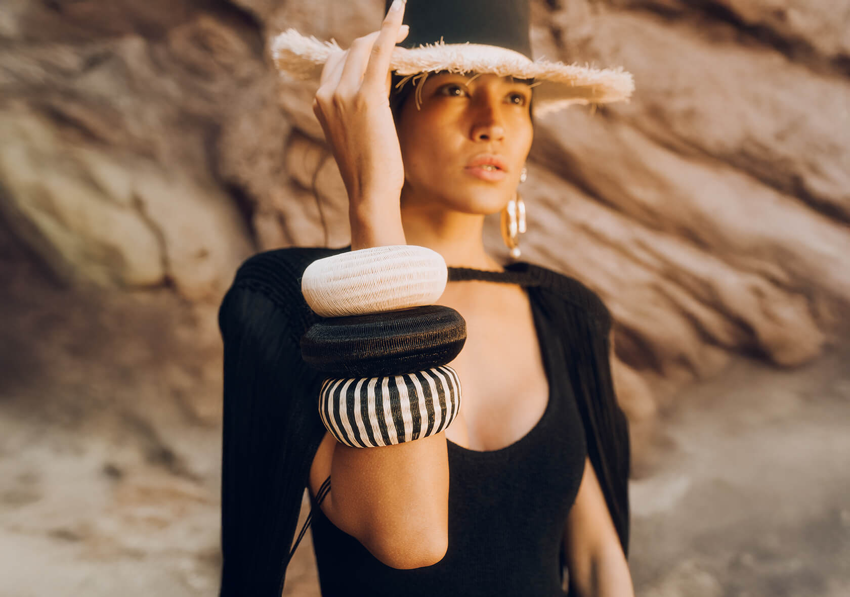 En lo profundo de la selva del Chocó, una mujer Waunana teje en silencio. Sus manos, guiadas por siglos de tradición, transforman fibras naturales en una pulsera única. Cada nudo es un susurro ancestral; cada color, un eco del río, de la tierra, de su historia.